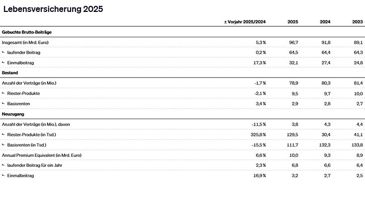 Die Versicherungswirtschaft hat sich 2025 trotz eines schwierigen wirtschaftlichen Umfelds stabil gezeigt. Über alle Sparten hinweg stiegen die Beitragseinnahmen um 6,6 Prozent auf 254 Milliarden Euro. Für das laufende Jahr 2026 rechnet der GDV mit einem Beitragswachstum von 4,7 Prozent.
